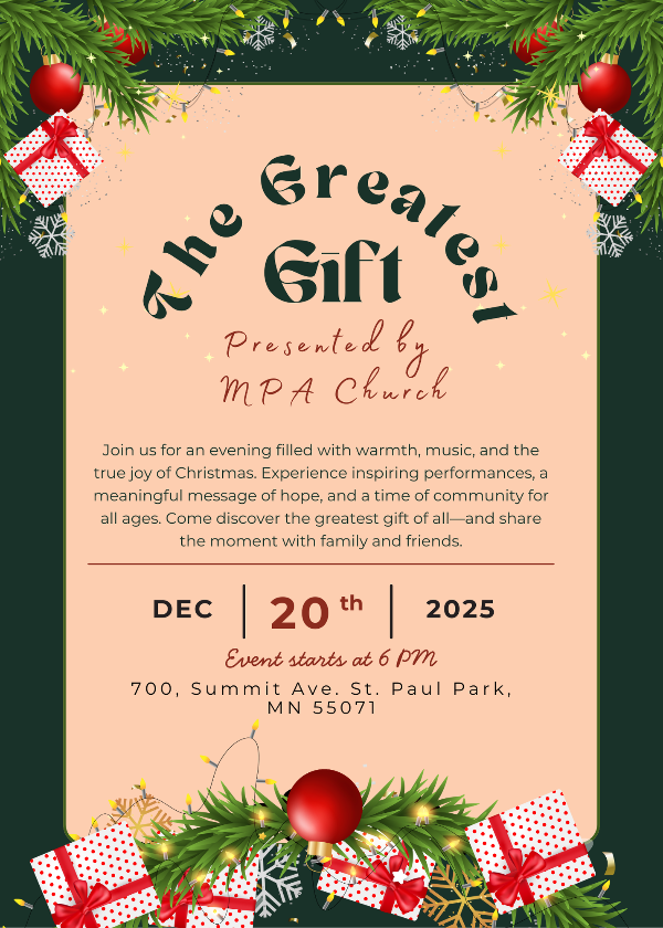 Join us for an evening filled with warmth, music, and the true joy of Christmas. Experience inspiring performances, a meaningful message of hope, and a time of community for all ages. Come discover the greatest gift of all--and share the moment with family and friends.