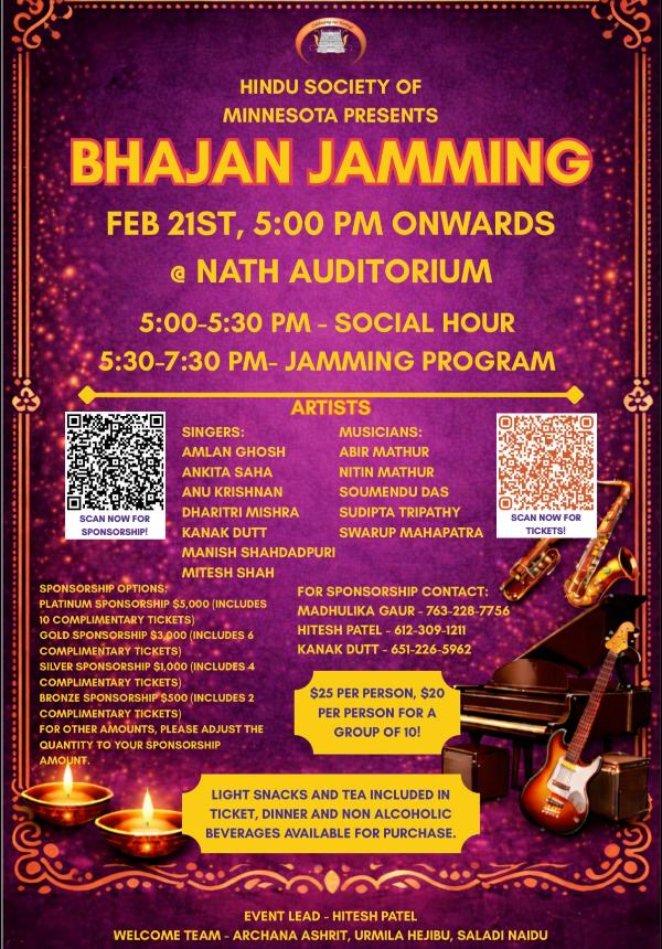 Saturday 21st Feb 2026 from 5pm at the Himdu Temple of Minnesota