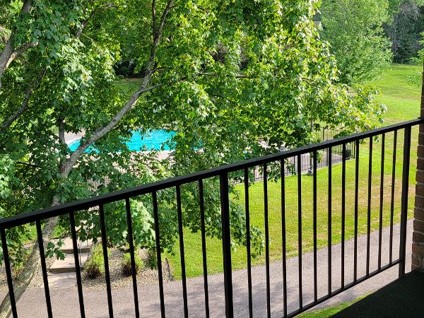 Security cameras in the building, elevator, a small gym, outdoor swimming pool and community parking. Bus stop, movie theater, restaurants and convenient stores in the block. Cub Foods in 4 minutes' drive and India Bazar in 10 minutes' drive.
