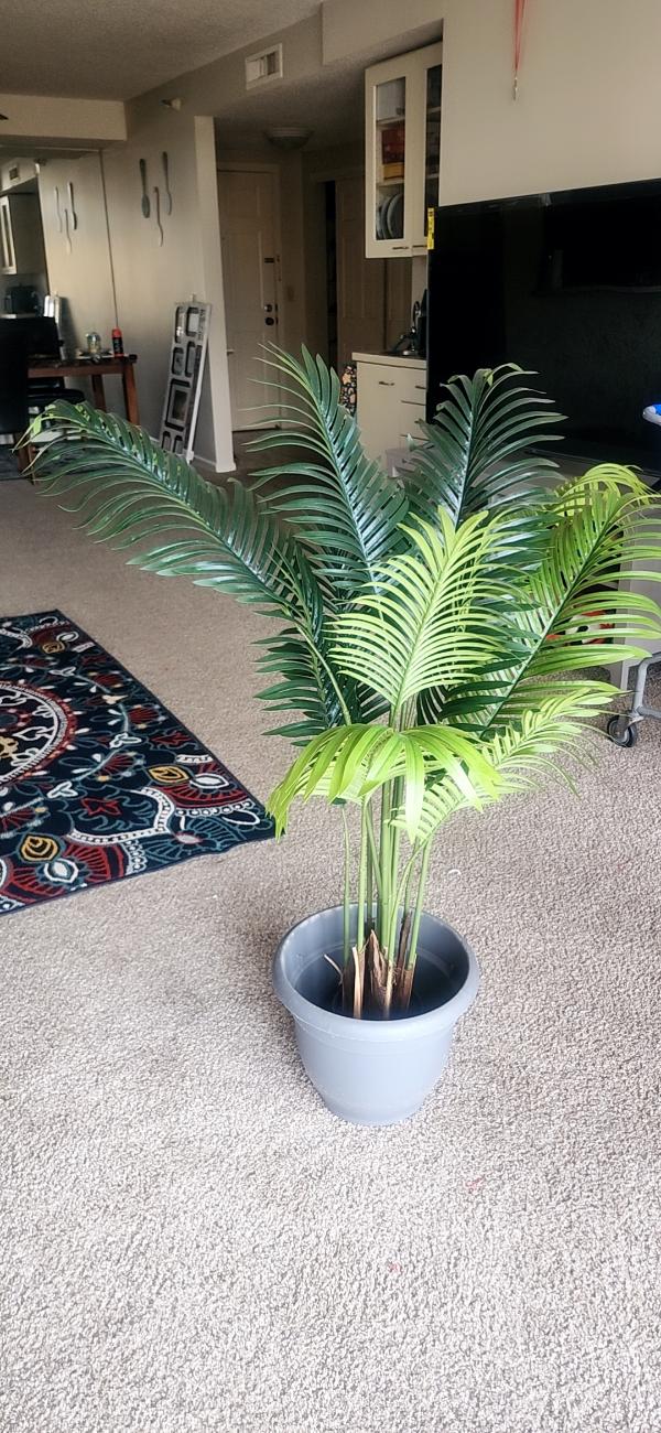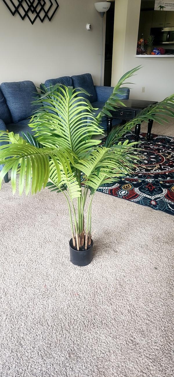 4ft fake palm tree for home/ office decor. Green color and pot included.